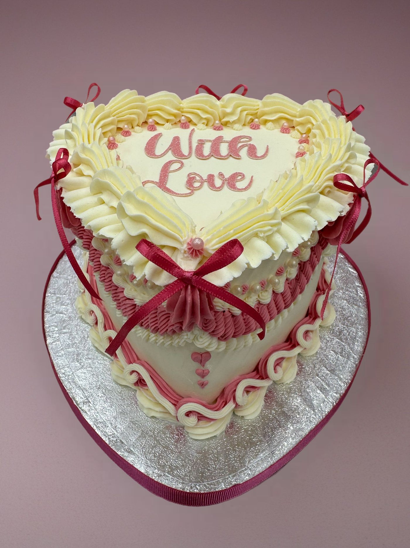 Have you ever heard of a Lambeth cake? in short, its a vintage style of cake decorating that was popularised in the 1930's. These cakes are decorated with intricate piping details, layering the buttercream and creating what looks like fluffy, ruffly dress.